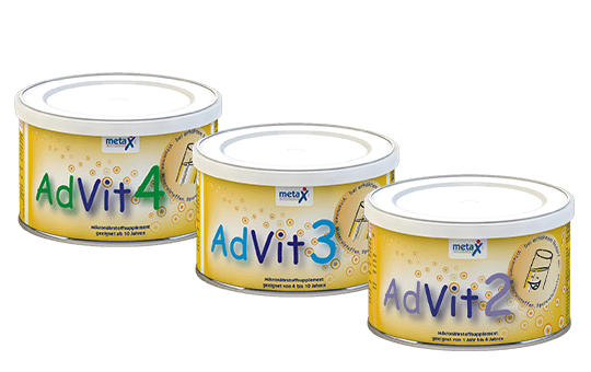 AdVit ist ein Mikronährstoffsupplement in Pulverform für 3 Alters-Stufen.