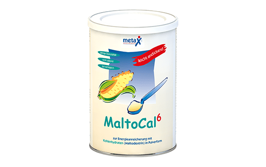 MaltoCal6 ist ein leicht lösliches Glukose-Saccharid-Gemisch in Pulverform ab 1 Jahr – auch Maltodextrin genannt.