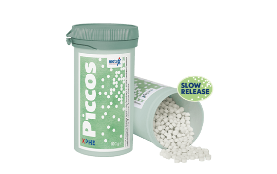 XPhe Piccos sind ein hochkonzentriertes phenylalaninfreies Eiweißsupplement in Form sehr kleiner Tabletten/Pellets ab 3 Jahren – angereichert mit Vitaminen, Mineralstoffen und Spurenelementen. XPhe Piccos zeichnen sich durch eine verzögerte Freisetzung der Aminosäuren aus – Slow Release.