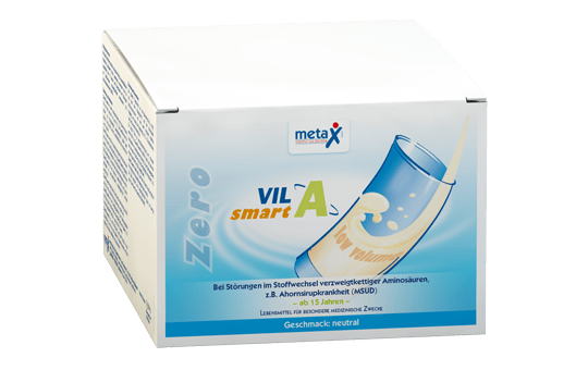 Die gesamte Tagesmenge an Aminosäurenmischung richtet sich nach Alter, Körpergewicht und der individuellen Stoffwechselsituation und wird unter ärztlicher Kontrolle festgelegt. Am besten die Tagesmenge auf 3 – 5 Portionen verteilt einnehmen. Die tägliche Dosis an Aminosäurenmischung kann entweder ausschließlich aus ZeroVIL smart A bestehen oder auch aus einer Kombination mehrerer Aminosäurenmischungen, die zum Diätmanagement bei Störungen im Stoffwechsel verzweigtkettiger Aminosäuren, z. B. Ahornsirupkrankheit (MSUD), geeignet sind. Die Diät erfordert eine bedarfsgerechte Zufuhr an Energie, natürlichem Eiweiß und anderen Nährstoffen.